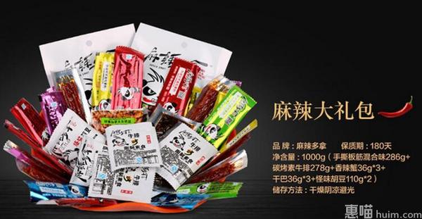 这款麻辣多拿辣条零食大礼包,规格为1000g,给你儿时麻辣零食舌尖上的记忆,麻辣爽口,辣劲十足,片片入味,口齿生香,多种品类可选,一次性满足你的味蕾享受,快和朋友一起分享,回忆童年吧~