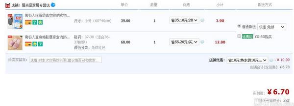 然后叠加10元优惠券,实付6.7元包邮到手,超值的,平常一双拖鞋都不止这个价了呢!