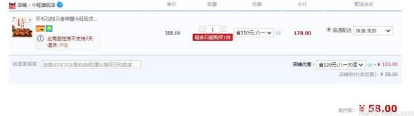 天猫旗舰店售价178元,喵友们还可以领取120元优惠券,券后实付58元,好价啦,还送香辣蟹8只哟!又到吃螃蟹的季节咯!吃货们不要错过啦~