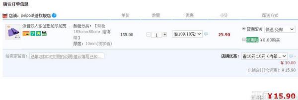 派普 加宽加厚防滑瑜伽垫 券后15.9元包邮