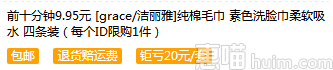 前10分钟半价# 洁丽雅 纯棉素色洗脸巾 4条装 10元包邮(19.9-9.9)