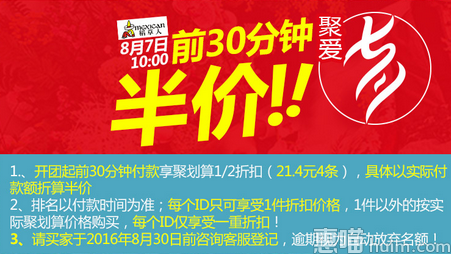 聚划算10点开启售价42.8元,前30分钟拍下付款的喵友还可以享受半价优惠,收货返现21.4元,相当于半价到手!,每人仅单件单个ID享受此优惠,好价啦,喜欢的喵友可以入手啦~