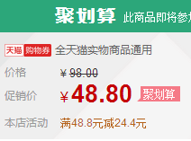 天猫旗舰店10点开启48.8元,前10秒下单立减,享受半价24.4元包邮,抢到了的神速手来报到哦~