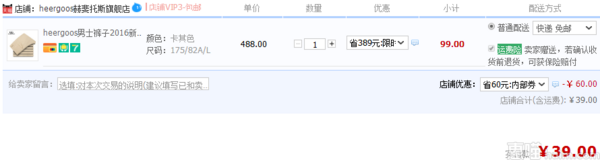 天猫旗舰店售价99元,可领取惠喵推荐的60元优惠券,券后实付39元包邮。中意的欧巴们可以入手哦~