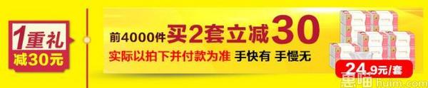 天猫聚划算10点开启39.9元,前4000名拍下2件可以享受立减30元优惠,折合每件24.9元,价格还不错的说!拍下立减!