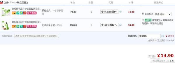 天猫旗舰店目前34.9元,下拉拍套装44.9元(面膜7片+卸妆油150g),喵友们还可领专享30元优惠券,实付14.9元包邮到手,无敌的价格啦。