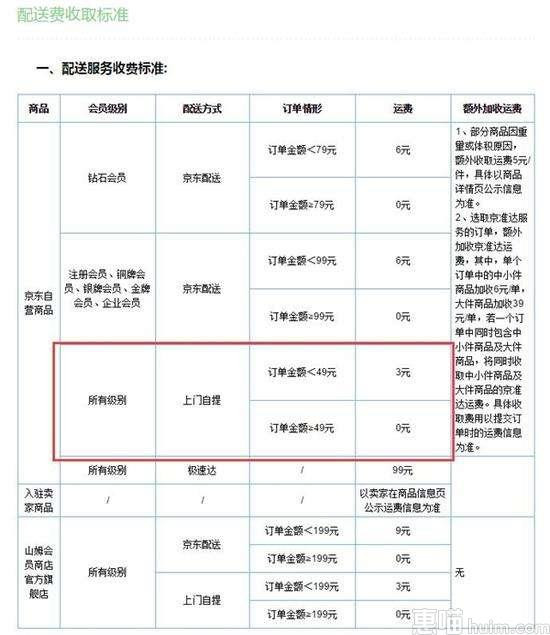 自今年4月1日起,京东宣布调整自营商品物流运费,金牌会员及以下等级用户的免邮门槛从之前的79元提升到了99元。同时,配送点自提也开始收费。不过,可能是在与同行的物流竞争中感受到了压力,笔者刚刚从京东配送员口中得知,京东于近日悄然对运费做出新的微调,配送点自提已经开始实行满49元免运费政策。随后,笔者前往京东官网对运费政策进行了查询。果然,针对所有级别用户的自提服务运费有了新变化,从之前“满99元免费,不满99元收费3元”变成了“满49元免费,不满49元收费3元”。由此可见京东更加鼓励小单客户使用自提业务。