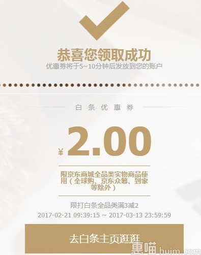 领券!免费领取 满3-2全品类白条券 京东商城价格 满3-2全品类白条券