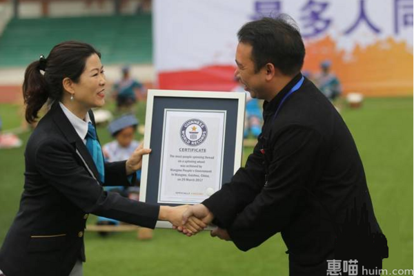 “手工艺类的认证是比较特殊和特别的,也特别有意义。”吉尼斯世界纪录大中华区认证官罗琼表示,吉尼斯官方一直在中国区寻找让国人骄傲的文化符号和文化记忆,而且通过认证记录这样的方式,让全世界认识中国,认识民族文化。“很喜欢这些穿着民族服饰挑战和展示纺线的布依族人,她们的民族手艺和民族风采很吸引人。”