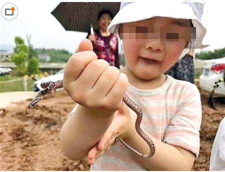舒先生:我妻子和我丈母娘当时都在,起初她们不让孩子玩蛇,但我坚持让小孩接触,我不想小孩怕任何东西。蛇、老鼠等动物都会让小孩感到畏惧,但这种畏惧可能是来自旁人强加的意识,不一定是孩子的主观意识。我觉得,过分溺爱、保护,频繁干预,会导致孩子无情和无能。