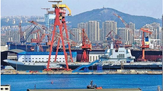 正式下水指日可待,意味着航母的主体建设已经完工,航母将离开船坞,进入水中作进一步的舾装,也就是电子设备、武器等的精密布置工作。