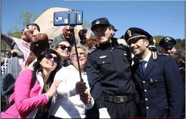 联合巡逻分两组同时进行,每组由两名中国警员和两名意大利警员组成。帅气干练的中意警员的一同出现,不仅吸引了中国游客合影拍照,更有很多外国游客感到新奇,驻足观看。很快,巡逻小组就碰上了来自意大利的旅行团。面对来自家乡的警察,意大利游客非常兴奋,齐竖大拇指,热情地和中意警察合影交流,现场更是齐唱意大利国歌。歌声温暖悠扬,在场的中国游客纷纷鼓掌。