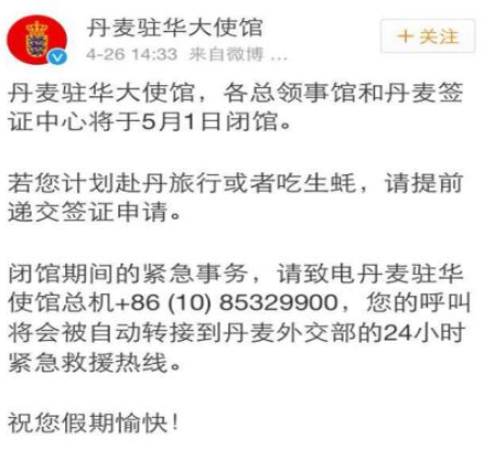 此次丹麦利用生蚝来吸引中国游客,实在是高招,中国人口众多,最最不缺就是吃货,有网友建议,在海边建个房子,给中国游客提供锅碗瓢盆,不管你是生蚝还是螃蟹,海平线都给你吃抹平。26日下午,大使馆公布劳动节闭馆消息,特意提醒“计划赴丹吃生蚝的朋友请提前递交签证申请”!