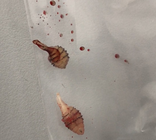 去热带国家旅游被虫咬,没想到虫竟然在小腿上“安家”产卵!昨天,上海中医药大学附属龙华医院中医外科阙华发教授团队从28岁的顾小姐小腿中取出二条活着的虫体,检验证明是巴西玻利维亚当地昆虫的蝇蛆。术后结合内服中药清热利湿,凉血解毒,同时疮内窦道予中药外治等以助伤口愈合。