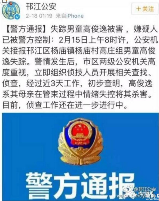 2月14日,情人节,幼儿园老师让孩子们准备瓶子,第二天做手工作业。由于家中没有合适的瓶子,次日早上7点左右,郑老太就匆匆出门,去镇上给小高买瓶子,此时,家中只剩下儿媳母子三人。