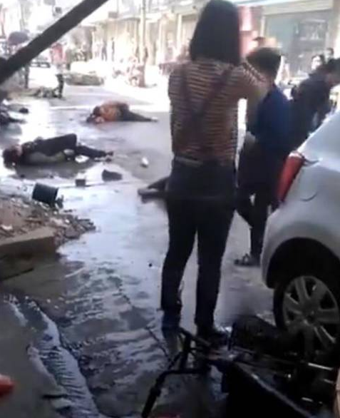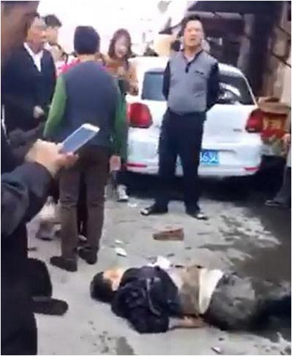 今天上午9点半左右,宝应县东窑巷发生一起车祸,一辆白色大众轿车连续撞倒七位行人后才停下了来。