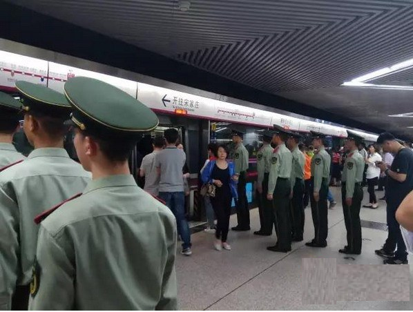 据了解,这些武警是完成了在奥体中心附近的执勤任务后,乘地铁返回部队。