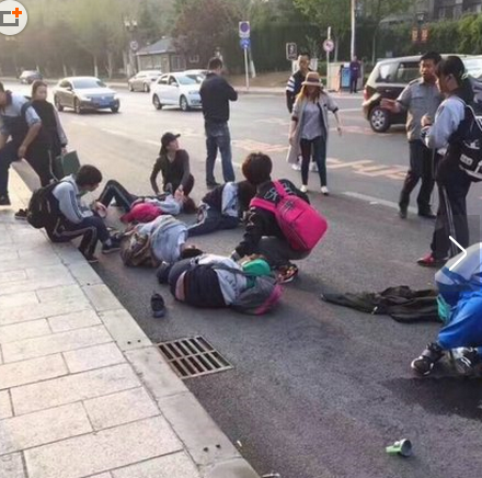 据现场保安透露,当时有的学生被撞受伤,倚坐在栏杆处,有的躺在地面上,学生们被吓得不停哭喊。路虎在撞完学生后还撞了一辆出租车才停了下来,在事故发生后,老人并没有下车。