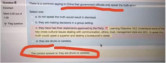 这是莫纳什大学(Monash University)人力资源管理课的一次小测试,试题刊登在该学校的网站上,面向包括中国人、印度人、澳大利亚人等在内的所有MG2340(课程代码)的学生,但10道题有一半都与中国有关。