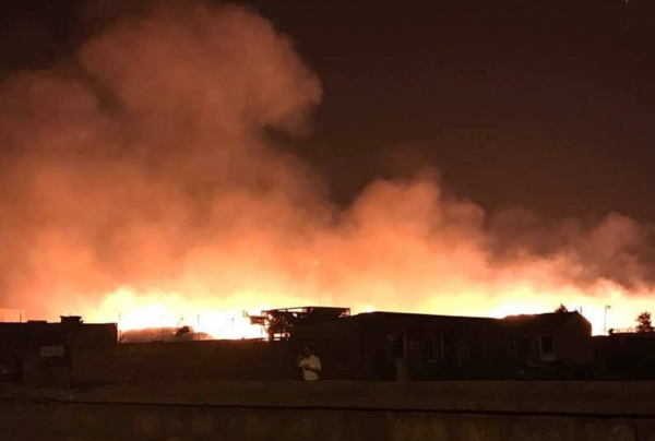 据一位目击者称,晚间9点左右,位于天津港保税区中储四号门旁的一家纸业公司内燃起熊熊大火,方圆三公里内能看见火势凶猛。