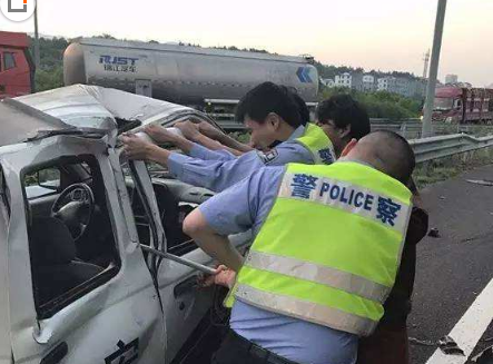 “由于受到严重撞击,左右两侧的车门已经打不开了,我们就一边用铁棍撬车门、用双手拉车门,一边敲打车窗想喊醒他。这样子持续了6、7分钟,他仍然毫无动静,我们就把车玻璃砸开,试着拍打着叫醒他,但依然没有反应。”