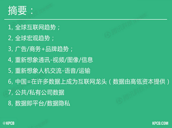 这份备受市场期待的报告辑录了信息量最大的研究结果,其中包括哪些板块获得了融资、互联网采用率的进展情况、哪些用户界面正在引发共鸣以及未来的大事件将是什么,同时,该报告指出了广告行业发展的一些趋势。