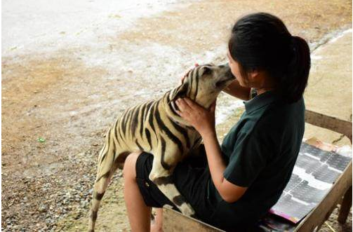 最近在泰国的《世界日报》报道称,在泰国的一名21岁年轻女生苏坦雅因为热爱艺术,于是便将自己饲养了7年多的小狗“秋秋”化妆成老虎的样子,技术之高足以以假乱真。看着跟真的一模一样。