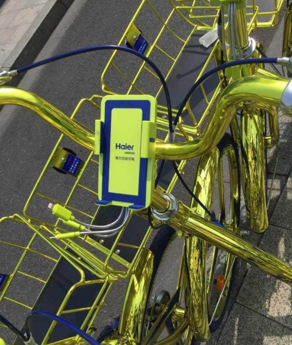这批车叫酷骑单车,车前自带手机支架,还配有一个充电宝。简单来说,这款“充电宝”只能在骑行时为手机等移动电子设备充电,并且自带手机支架及三款常见的数据线,所以也称”充电版“共享单车。所以说,虽然价格贵点,但对于没电的人来说,绝对是个好选择啊!
