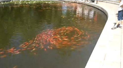 据报道,6月20日,山西太原的龙潭公园里数千条锦鲤列队向前,然后朝一个方向转圈,场面壮观,令人惊奇。一市民说,在公园活动十几年,从没见过这样的现象。