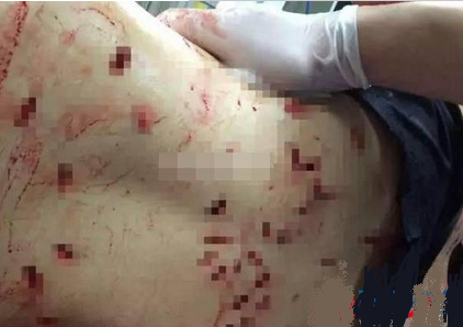 1、失血性休克;2、全身多处锐器伤;3、双侧开放性液气胸;4、腹腔脏器破裂。