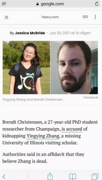 联邦调查局向法庭提供的文件显示,犯罪嫌疑人名叫Brendt Christensen,是香槟分校物理系的博士生。此人在6月29日承认绑架了章莹颖,但调查人员尚未发现失踪女生的确切下落。
